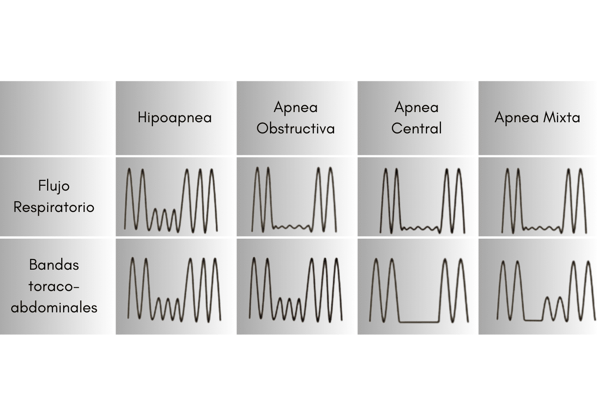 • Apnea mixta: Comienza como una apnea central (sin esfuerzo y sin entrada de aire) y termina como una apnea obstructiva (el esfuerzo reaparece, pero la vía aérea sigue cerrada).